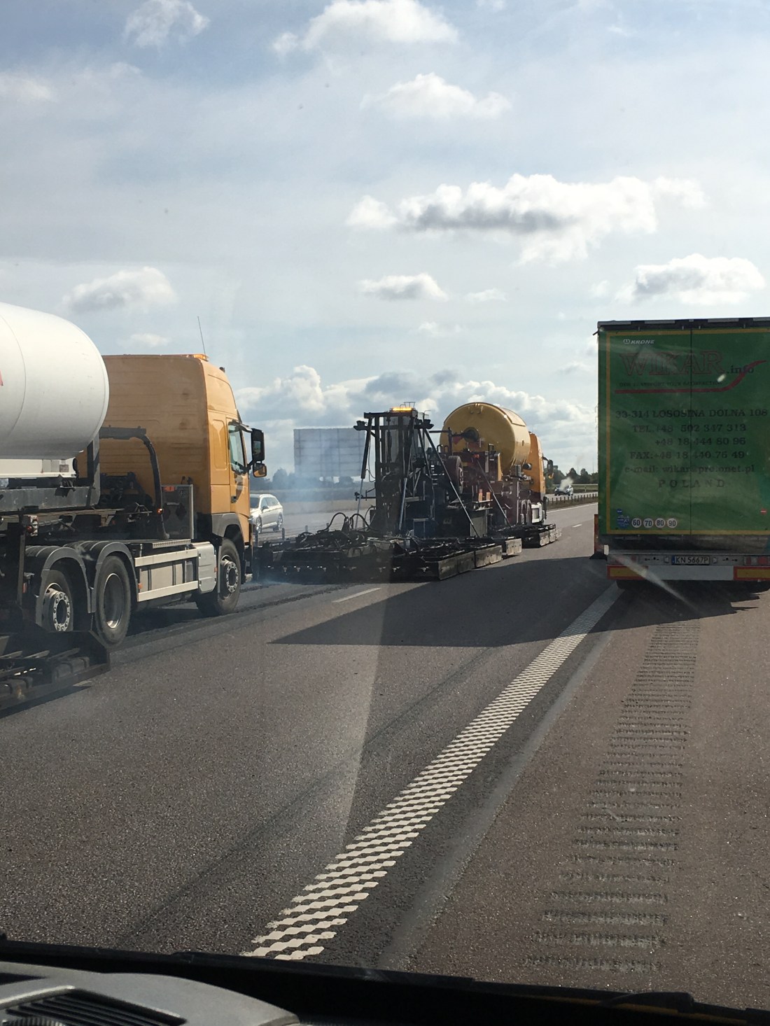 Sen iväg mot arbetsplatsen igen. Många funderingar hänger kvar sedan igår och jag tänker på vad man kan förbättra. Vad kan man ändra på och hur kan man ändra på? Varför saktar inte bilister ner när vi finns så nära dem? Alla vill ha fina och bra vägar men när vi fixar det så är vi bara ivägen! Man kan tyvärr inte bara rulla ut ny väg som man gör med en matta! Hade varit enkelt och snabbt avklarat😂