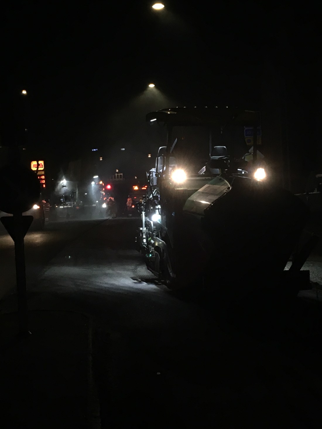 Har varit en lugn men ganska kall natt. Glad att jag tog med mej mannens värmeväst. Dubbla underställ och overall, värme från nylagd asfalt, så egentligen var det bara händer och näsan som fick alldeles för mycket kyla!😂