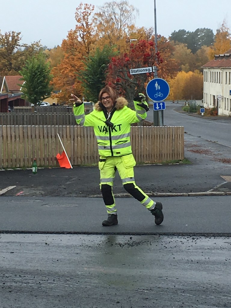 Märkte redan i går kväll att vinden tilltog ordentligt. Så jag trodde jag var beredd på vad som komma skulle. Alltså så ska man ju bara inte tänka. Ösregn, snö och stormvindar, grenar från träden kom flygande, alla skyltar for åt pipsvängen. Inte ens lönt att resa dem upp igen, trillade så fort vi rest dem, till sist gav vi upp det! Det är första gången på fem år som jag har varit med om sånt skitväder. I helgen ska jag impregnera mina handskar för det var det enda av klädesplaggen som blev blöta rätt igenom nästan direkt😀 Nöden har ingen lag, heter det ju så man fick vara lite uppfinningsrik för att avvärja förfrysning av fingrar. Nya vantar i form av strumpor plastpåsar och raggsockor tillverkades i en hast och förmodligen till många bilisters nöje. Halvblöta ”håsååår” e fan inte å leka med,,,, Hahaha, jag döööör😂😂😂 hängandes från handen och liknade en fot, men händerna var torra i alla fall!! Tänk va lite som behövs för att det ska va roligt när det är som värst!