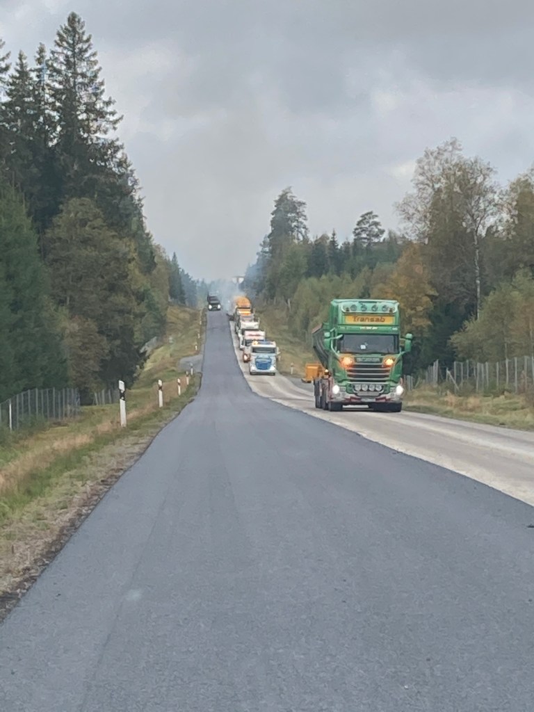 Dagen igår, med regn hängande i hasorna, gick lysande, så klart. Vi kom igång sent, verket börjar se slutet på säsongen tydligen 😀 vi blev klara med området och de värsta regnskurarna drog förbi vid sidan om oss. Vi packade ihop allt och tog en tur till Ålem för att ställa av bommar och lotsbil, nästan lite sorgligt. Sen var det iväg hemåt, vi kom till Nybro, då blev vi anfallna av ”John blund” det var bara att stanna och sova. Stor fördel med mitt ”home-away-from-home”,,,,, bara att stanna och sova lite. Nu tar vi sista biten hem😀