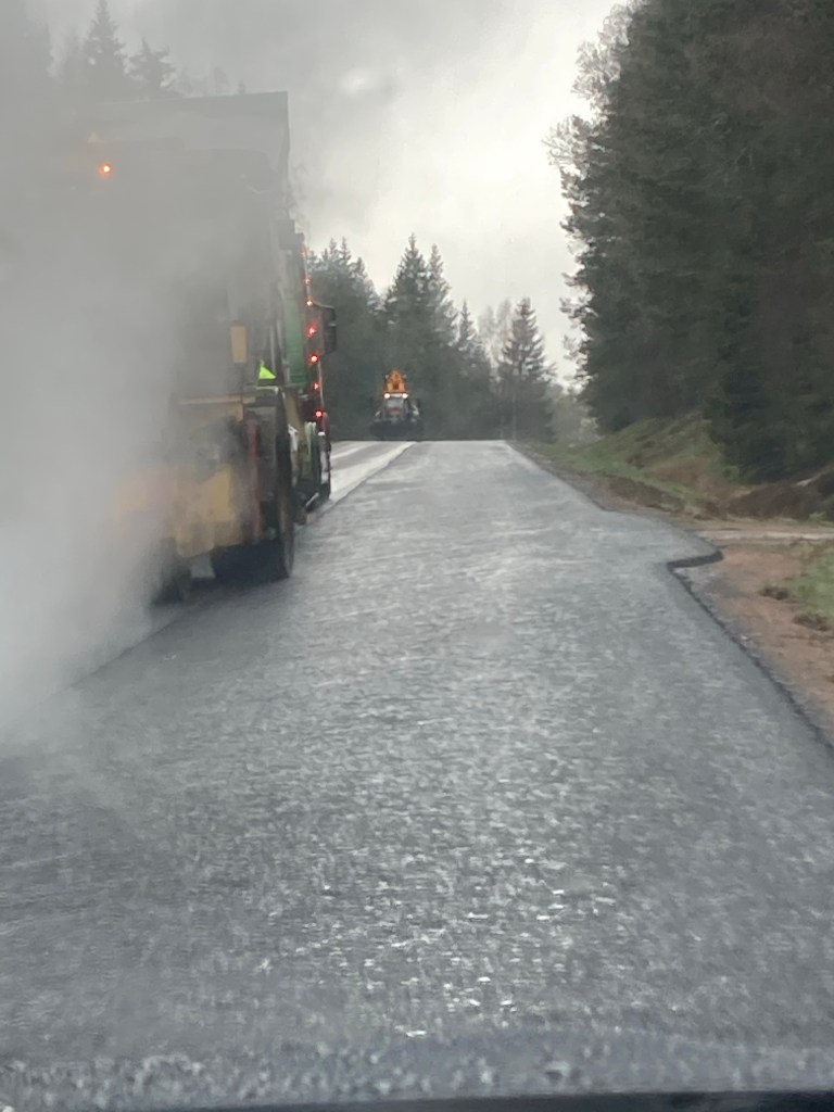 Mindre trafik idag men mer konstigt folk. Man nonchalerar bommen och möter lotsen och så får de backa! Bilister som inte kan läsa skyltar, både vid vägar och på lotsbilen. Bilar som vill svänga in efter massabilarna. Till slut blir det ganska tröttsamt😂 Har också mött trevliga människor som varit nyfikna, haft besök av tre älgar på en angränsande åker. Händelserik dag!