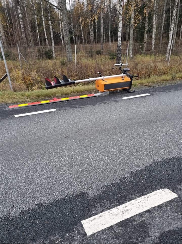 Det blev ett kort gästspel på vägen, den ena välten blev ”plötsligt sjuk” och så var det med den läggningen. Bara att packa ihop igen. Ny vält väntas i morgon! Bommarna hann också få sej en omgång,,, båda två! Men självklart så funkar de ändå trots sned bom!