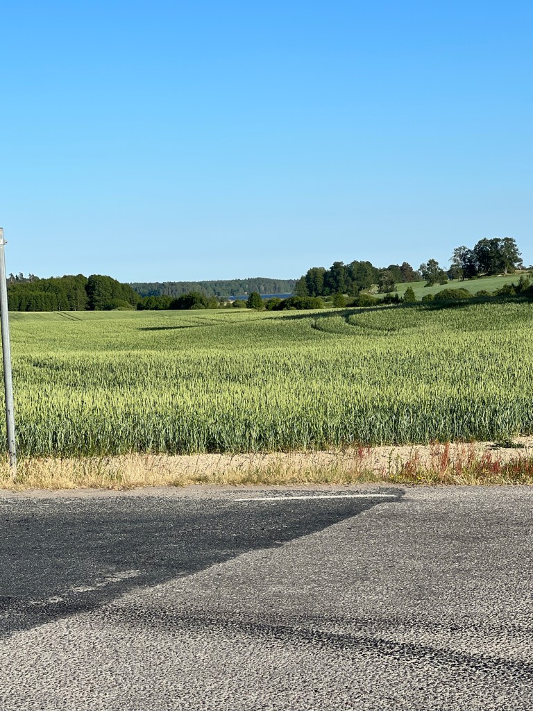 Sista biten idag då, i hettan. Inte ett moln på himlen. Mycket trevligare bilister idag, till och med en som kom och bad om ursäkt för sitt beteende igår. Stort! Det har väl aldrig hänt. Undrar hur det kan skifta så från en dag till en annan, alltså folks humör?