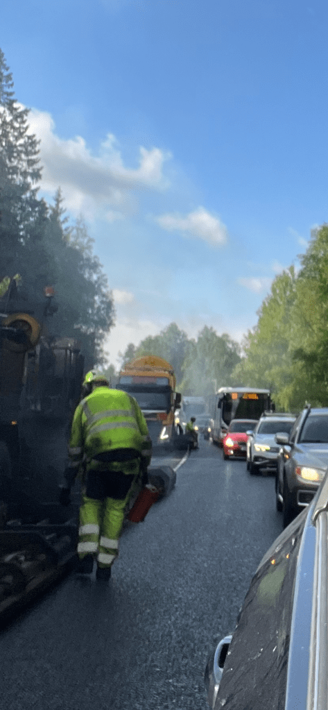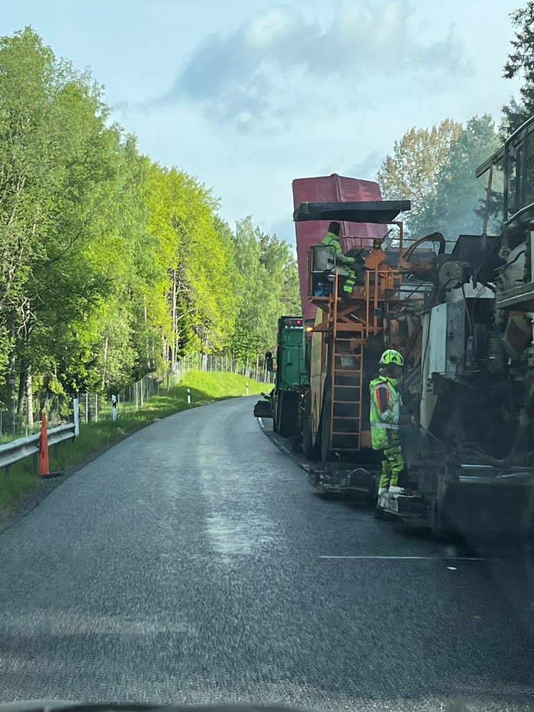 Asfaltering på omledningsväg med ”vårat” team. Tillbaka till det vanliga med mycket skratt och sura skämt, precis som det ska vara. Det är här jag trivs bäst! Fint väder och hur mycket trafik som helst så dagen har gått väldigt fort och utan större missöden. Bara ”ahlman-Skalman som behövdes dras upp ur diket, efter en något misslyckad parkering. Småsaker som händer som dock förgyller tillvaron.