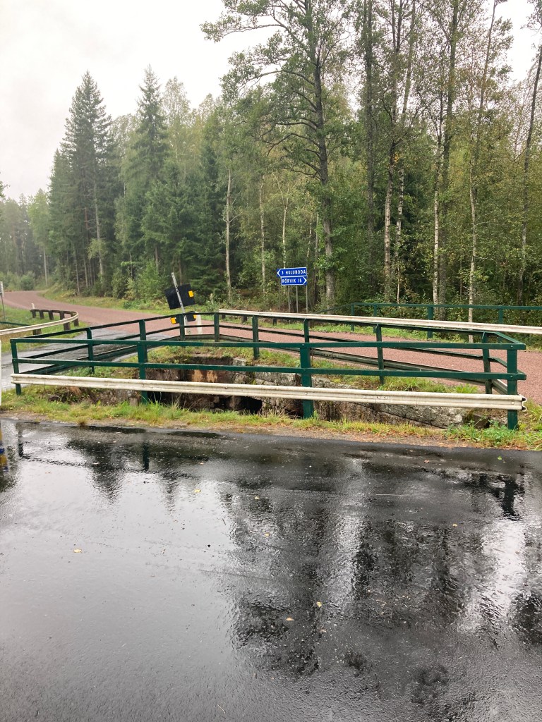 Och så lägger vi väl till torsdagen här också😀 ute i tassemarken finns det nämligen ingen täckning! Inte mycket att berätta idag, vi har suttit på en avstängd väg,,, det absolut tråkigaste som finns. Absolut inget att berätta,,,,, nada! Regnar och blåser gör det också,,,, så oddsen för glädje är lika med NOLL😂 Jag står i en trevägskorsning och det enda märkvärdiga här är hur de har byggt korset,,, typ 1929 nångång!! Rinner nämligen en bäck mitt i alltihopa.