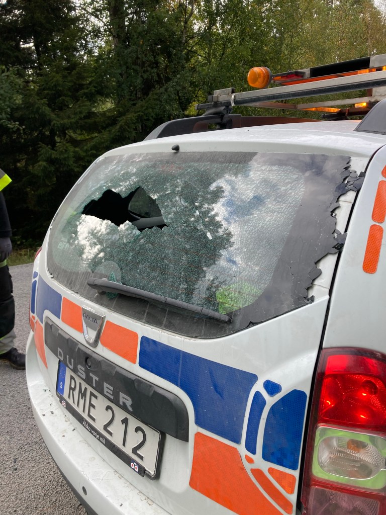 Och så skulle vi ju flytta till nästa arbete ett par mil bort,,,, långt ute i tassemarken! Vi lastade bommarna först och när vi stod där och plockade ihop den ena bommen så exploderade lotsbilens bakruta,,,, bara så där! Tyckte mest att det räckte med skit för den här dagen då. Nåväl,,, jag blev skickad till nästa ställe,,,,, jävla GPS, vilka vägar alltså,,,, eller var det kanske på grund av ”handhavandefel” som min bror brukar säja! Det säjer han om allt som jag gör tosigt😂