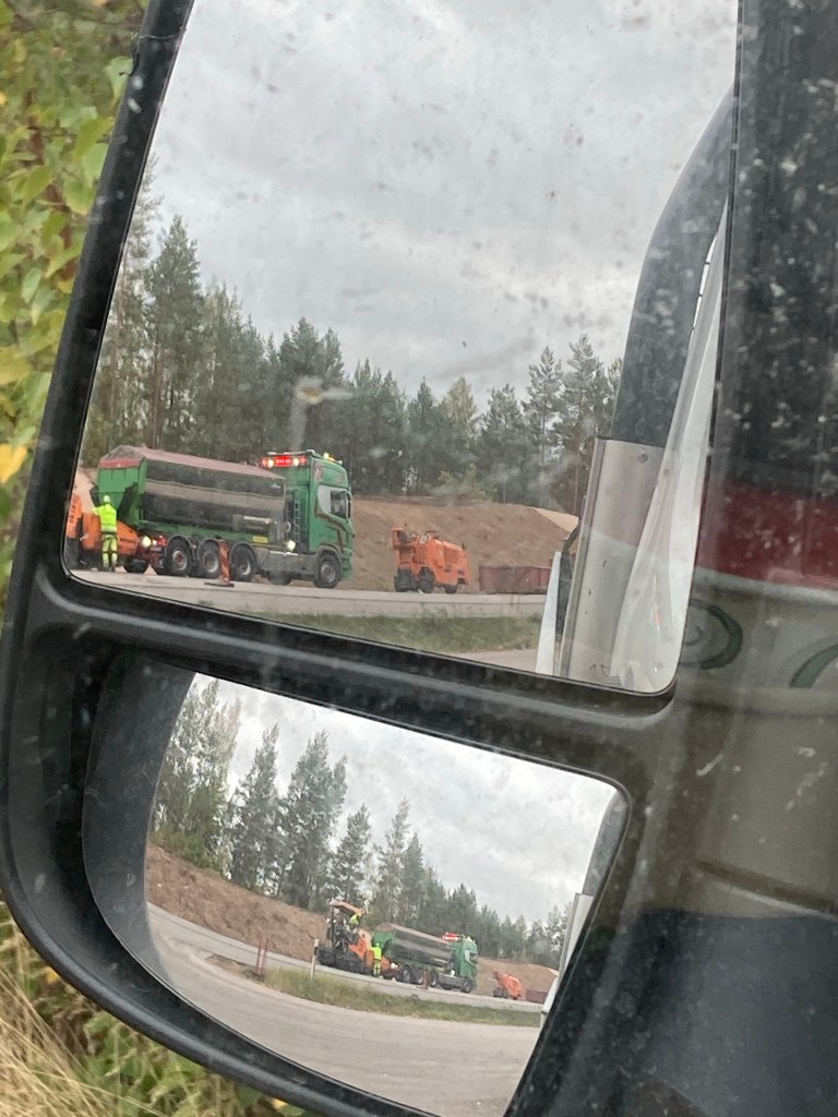 Ena halvan av vägen blev klar idag och vi drog ett antal mil söderut, till Blomstermåla för arbete i morgon. Naturligt nattstopp hos bror min.😀