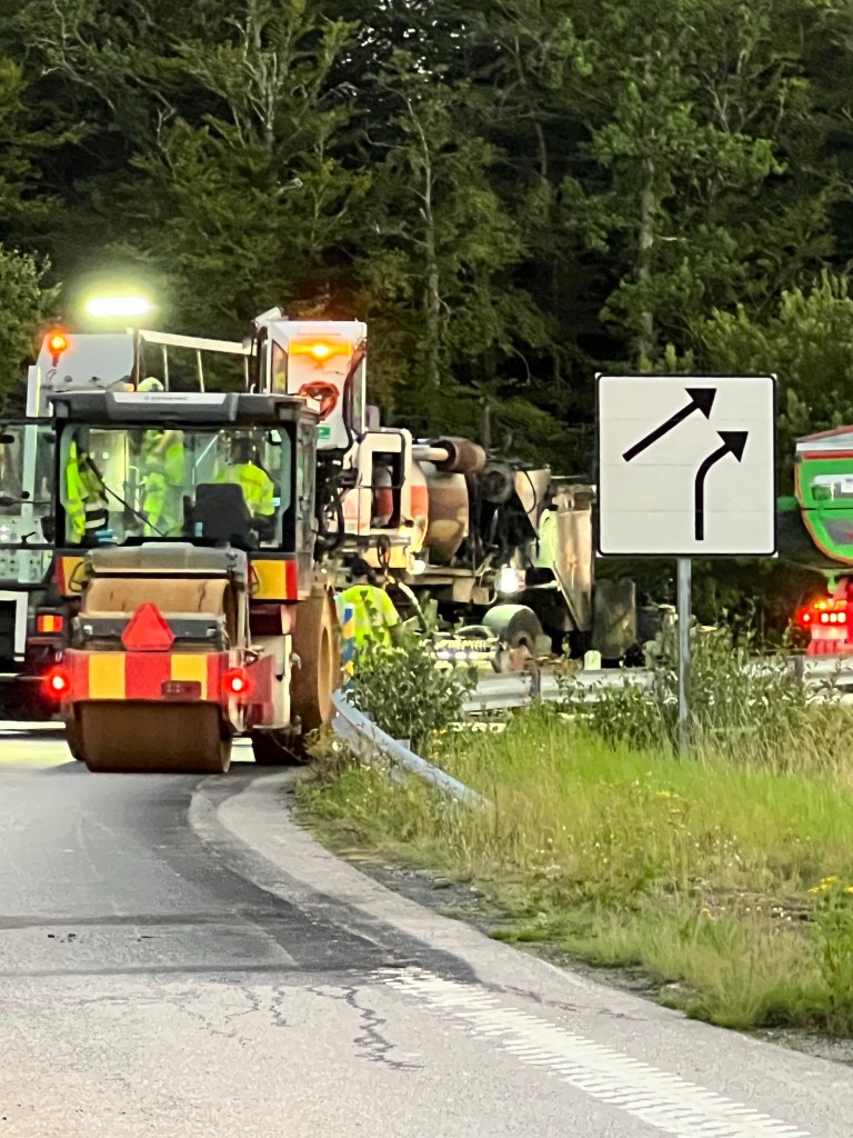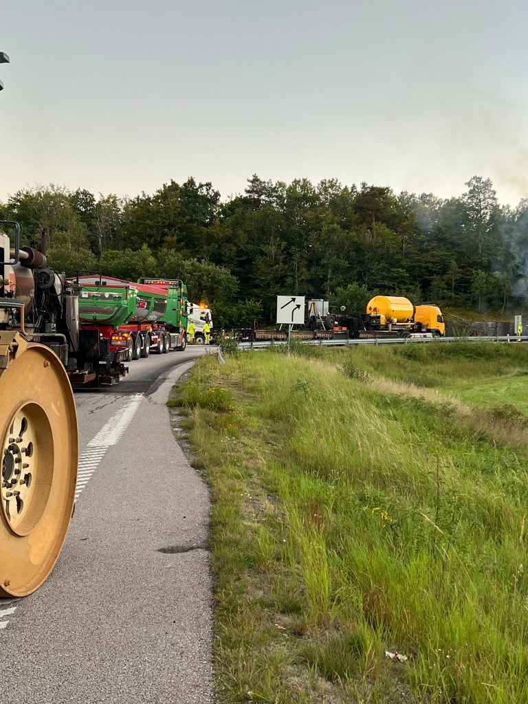 Nu är skyltarna tvättade, gräset klippt i kanterna, dikena urgrävda och så ny asfalt på det. Kan det bli bättre? Ska bli kul att se detta när jag åker hem om ett par timmar.