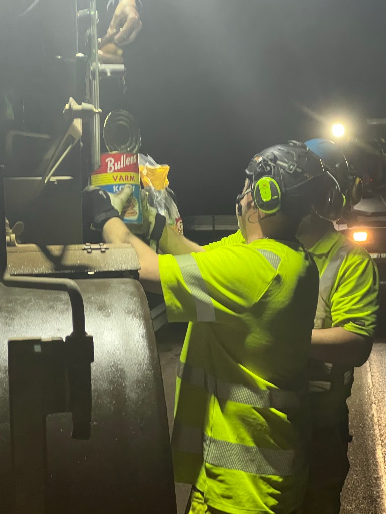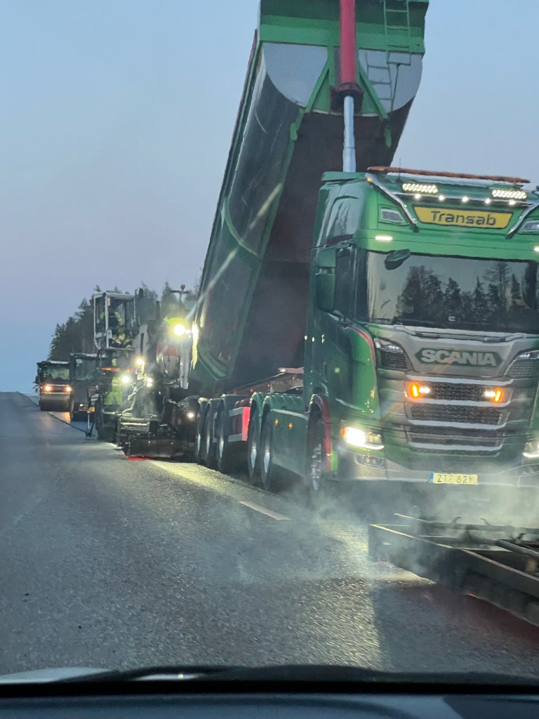 Jag trycker upp bommen, startar sakta och ser så att alla hänger med. Ökar farten sakta, när vi närmar oss läggaren saktar jag ner farten och ”samlar ihop” kön. Då ska alla helst ligga på en linje med ganska litet mellanrum mellan bilarna. Det är den enkla biten och den bit som jag kan styra enklast. Sen börjar det,,,, vi håller en hastighet förbi som är anpassad efter hur vägen ser ut och hur bred den är, om vi har mycket lastbilar och hundra andra saker. Röken från heatrarna är inte farlig men kan göra att man ser lite sämre och blir osäker som bilist. Därför är det så viktigt att hålla ihop kön. Vissa bilar kan ta lite längre tid på sej att passera, fult förståligt och är inräknat i tidsplanen, 10 minuter. MEN om man som bilist skulle råka komma lite på efterkälken behöver man INTE gasa på utav helvete för att komma ikapp igen, fortsätt bara i samma lugna takt, ni kommer ikapp ändå. Vi har koll på er och många års erfarenhet, typ 10 år. Vi vet mer vad ni gör bakom oss än ni kan ana. Även om vi har 60-70 bilar i ett ”släpp”. Vi vet hur ni kör, av erfarenhet.Det är så här,,, om ni gasar på för mycket kommer de resterande 30 bilarna att passera Läggarlaget i en helt oacceptabel hastighet, det blir lite som en ketchupeffekt. Det är inte enkelt att lotsa för att skydda de som arbetar så nära era bilar, som en del tycks tro och nonchalansen hos en del av er bilister är emellanåt skrämmande. Vi fortsätter att köra väldigt sakta en bra bit efter vi har passerat läggaren för att undvika just ketchupeffekten och det kan vara irriterande för er som inte förstår anledningen. När ni kör här får ni verkligen träna erat tålamod. Det tar tid och det är nödvändigt.