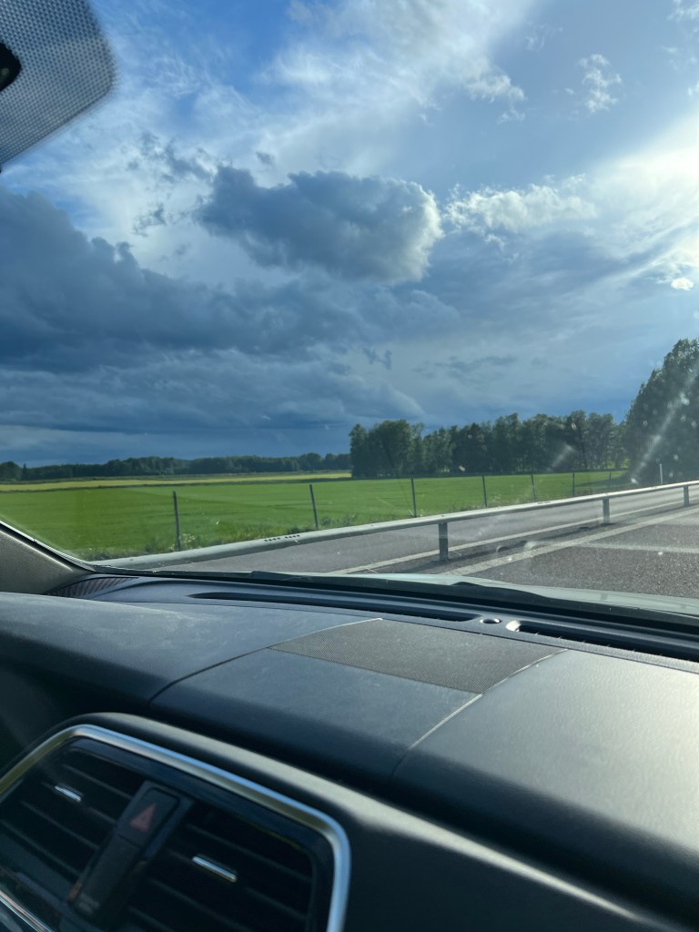 Hur kunde klockan bli såå mycket, halv 4 slår jag upp ögonlocken och tror inte det är sant. Knappt jag hinner ”morna” mej innan det är dags att köra ut på arbetsplatsen. Trodde inte jag var så trött.😂 Stannar till vid affären, måste ha nåt ätbart och nån dricka inför nattens arbete.