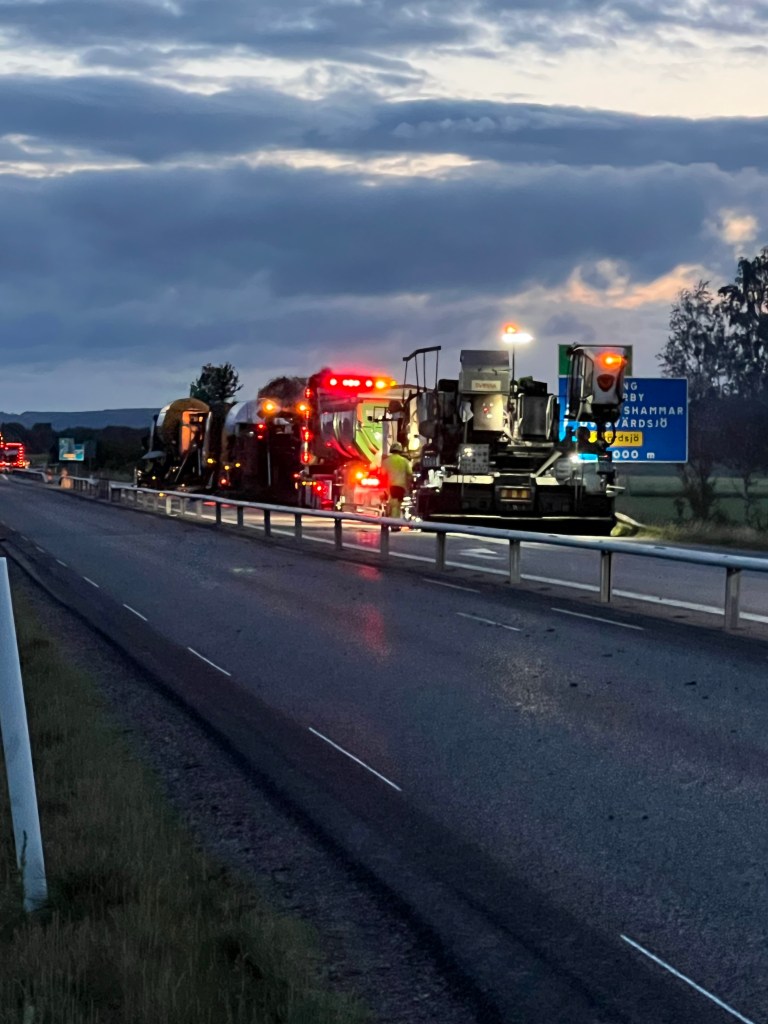 Inte roligt att jobba då😢 åh så mycket tokigt folk gör. Kör på avstängd väg,,, i nylagd asfalt, struntar i skyltar, omkörningar på de mest olämpliga ställen.